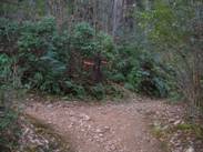 遊歩道を上っていくと、9時32分に「西百々ヶ峰」との分岐三叉路にでる。直進すると「西百々ヶ峰」へいくのであるが、ここで鋭角に左へ曲がって「百々ヶ峰」を目指す。「百々ヶ峰展望台まで1050m」という表示がある。ここからは、尾根道を進んでいく格好になる。9時34分に尾根上のピークを越えると、この先部分的に、忠実に尾根をたどる山道と、尾根の少し下を右山で登っていく遊歩道の2つの道がある。どちらでもいいのであるが、私はいつも山道の方を選ぶ。