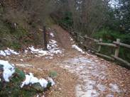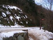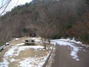 早速準備をして、9時03分に出発したのであった。遊歩道には雪はなかったが、管理車道には凍った雪が残っていた。そんな中、トイレやキャンプ場の横をすり抜けて登っていく。9時08分に「桜の広場へ330m」の標識のある三叉路で左へ曲がる。