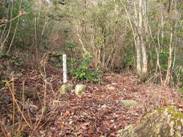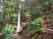 その奥に仮設トイレがあり、その横から山道があった。送電用の電柱もある。9時56分に、この山道へ入る。