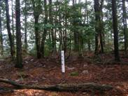 すると、11時14分に城山山頂(点名:蕨生)(396.6m)に飛び出した。城山というくらいだから、かつては城があったのであろうか、山頂は平らな広場になっている。しかし、今は樹林があり展望はない。