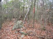 しかし、さらに西方に高い場所があったので、進んでみた。12時36分に最高点に達したが、なにも山名板などはなかった。さらに西へ進むと、やがて下りになったので、12時38分には引き返すことにした。
