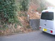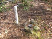 信号交差点には南東角に駐車広場があるので、ここに駐車した。そこに「岐阜県」の境界杭があり、そばには階段が作ってある。