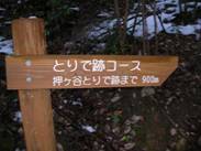 13時21分に牛洞坂の登山口から出発した。すぐに「とりで跡コース 押ヶ谷とりで跡まで900m」という道標があった。