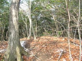 しばらくは平坦のようであるが、すぐに急登になる。右手に大岩があるが、9時24分に左側を通って大岩の上に出る。するとまもなく、9時28分にピークに出る。ここで地形図どおりに左へ曲がる。少しだけ下ると、右手から切り開きの道が合流していた。南東側から切り開きの道がついていたのだ。登山口はわからないが、この切り開きの取り付きがわかれば、この道を使ったほうがラクであろう。