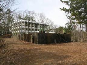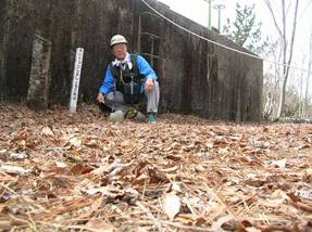 入口には鎖があるが、横からすり抜けて歩いていく。すぐに右側にNTT DOKOMOの本巣北無線局がある。それを通り越して登っていくと、今度は貯水タンクが現れた。ゴルフ場の貯水タンクと思われる。その貯水タンクの前に「点名:木知原(259.6m)」の三角点があった。四等三角点である。時刻は10時40分である。ほんの2〜3分で発見できた。この貯水タンクと作業道のお陰である。ゴルフ場の上部なので、展望はそこそこある。