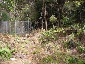 どちらに駐車してもよいが、熊野神社の裏手から山腹に取り付く。取り付き点には貯水槽があるので入山地点の目印にはなるだろう。登山道はおろか、踏み跡も獣道もないので、頼るものはないが、斜面をピーク目指して、よじ登っていく。
