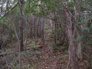 ここからは尾根が細くなってくるので踏み跡らしきものが明瞭になってくる。9時08分には掘り割れの道のようなものが現れたがすぐになくなった。
