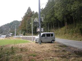 本巣市の樽見鉄道の「木知原駅」から北東へ入り、長谷集落へ出る。そして、以前に発見した「点名:南長谷(88.1m)」への入口である「長谷極又口」バス停の近くの路肩に駐車した。駐車場所には衛星放送のアンテナ塔があった。