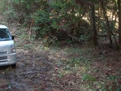 さて、上雛倉の集落のすぐ手前で右手へ入り、そのまま山腹へ向かうと、舗装路がすぐに未舗装になる。そのまま進むと、車での通行は不能になる。Uターンできる広場があるので、Uターンしてから駐車した。しかし、この未舗装の道は4WDでないと無理であろう。2WDの車なら、長い距離でもないので、舗装路のうちに駐車したほうが無難である。