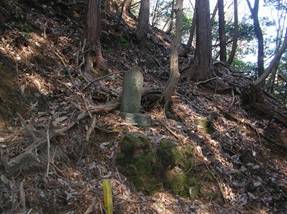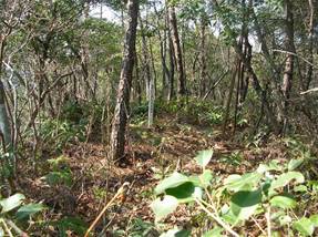 峠にはお地蔵さんが2体鎮座していた。しかし、1体はひっくり返っていた。この峠から左手の尾根に取り付く。尾根にはかすかな踏み跡があった。10時29分に最初のピーク@に出た。左方へ登る。10時37分にピークAへ出た。ここでは右方へ進む。そして、10時41分に山頂に出た。「点名:上雛倉(184.3m)」である。樹林のため展望はない。