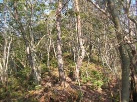 稜線上には踏み跡のようなものがあった。いままでの急斜面よりずっと歩きやすい。緩やかなアップダウンの稜線で、9時28分にピーク@を、9時31分にピークAをそれぞれ越える。