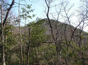 そして、9時35分に岐阜市と本巣市の市境尾根に出た。さすがに市境だけあって、尾根も明瞭で歩きやすい。右へ曲がって、目の前のピークへと、急になった斜面を登ると、9時41分に山頂へ出た。