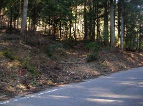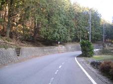 左山で山腹をトラバースしている。それで、この道を下ると、下に市道が見えてきて、8時57分に市道の峠付近へ下り立った。