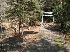 すぐにまた「浅間神社」の案内板がある分岐から、坂道の遊歩道を下って行くと、11時26分に分岐に出るが、正面に鳥居が見えるので、それをくぐる。
