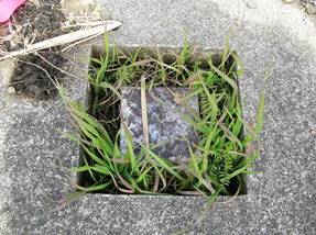 11時49分に歩き始め、スタジアム内へ入っていった。左にスタジアムを見ながら直進すると階段がありそれを上がった。すると、目の前の高みに「点名:円蔵洞」の標柱が見えた。