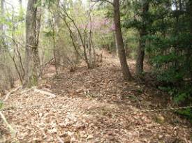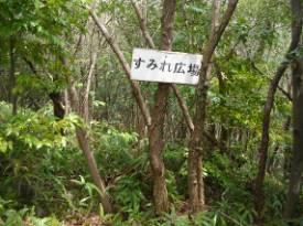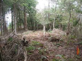 そして、12時12分には「コスモス広場」という立て札も現れた。スミレやコスモスが咲き乱れていたということか?たしかにそれまでの傾斜とは打って変わって平坦地にはなっているが・・・12時13分には「古墳の道」という立て札のある場所に出た。この先で登山道は右へ90度曲がっている。そして突き当たる形で今度は左へ90度曲がる。