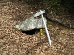 そして、尾根を登っていくと、12時00分には「西ノ門1号墳」という立て札があった。足元の岩が古墳なのであろうか。さらに登ると、12時07分には「西ノ門2号墳」という立て札もあった。そこにも岩があったが・・・