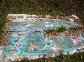 12時50分に沢筋に下り立った。あとは、沢を下ると、湿地帯があり、12時55分には大平山登山道案内図が放置してある広場に出た。ということは、かつてはこの登山道を利用して大平山へ登っていたということだ。看板には本巣小学校と書いてあったから、小学校の野外学習(オリエンテーリング)で使っていたのであろう。