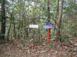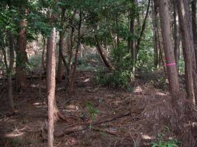 9時40分に鞍部から登ると、9時45分に山頂(179.8m)に飛び出した。しかし、樹林に囲まれ展望はよくない。山頂は平坦になっている。かつては城があったといっても納得できる。9時51分には往路を下山した。9時53分に鞍部に下り立ち、少年自然の家の看板から北へ下山することも考えたが、車の回収に困るので往路を下った。10時00分には尾根からの下降点に着き、10時03分に車の駐車場所に戻った。