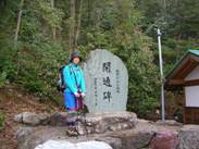 登山口の説明板を読み、金鶏山の由来を学習してから、6時39分に出発した。ジグザグに急斜面を登り、6時45分に尾根乗り越しに出た。ここから右山でトラバースして、6時53分に主尾根に出る。この先の尾根を直登することもできるが、そこにはビニールテープで通せんぼしてあったし、雨後で木々に露がついていたので、安全なコースを選択し、さらに右山のトラバース道を進んだ。そして、6時56分に展望地を通り、6時57分に頂上から南西に延びる主尾根に出た。あとは、尾根を通り、7時01分に山頂に飛び出した。山頂にはミニ大桑城がある。そこからは素晴らしい展望があるはずであったが、今日は残念ながら、ガスのため全く見えなかった。ミニ大桑城の背後には三角点がある。