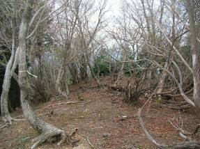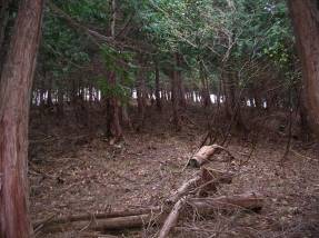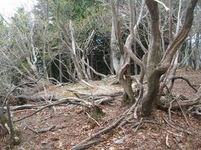15時15分に取り付いた。植林の中で登山道も踏み跡もないが、上方に尾根が見える。