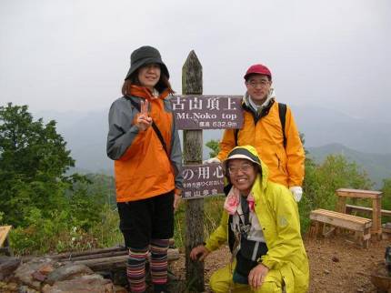 山頂には2パーティ、3人がいたが、すぐに下山していった。遠望はきかないので、我々は早速大宴会を開く。雨もぱらつき寒くなってきた。しかし、それらを大宴会の熱気で吹き飛ばす。そんなこんなで約1時間後、用意した飲食物もなくなり、11時30分には大宴会を撤収し下山した。下山は、中級コースを選択し、難所の岩場をなんとかクリアして、11時44分に岩場下のピークを乗り越し、12時02分に「塩の道」に下り立った。川辺町の大牧谷への分岐点でもある。大牧谷方面は通行止めとなっていた。さらに下山して、12時08分に水場を通過し、ここから沢沿いに下って、12時22分に林道へ下り立った。中級コースの登山口である。ここから林道を歩いて、初級コースの登山口に戻ったのであった。12時30分である。無事に下山できて、メンバー全員でお互いに健闘をたたえ合ったのであった。