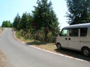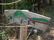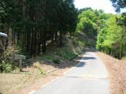 「点名:西谷」は、作業道から広域林道の池田明神線へ出て、ペアピンカーブを池田山方面へ少し戻ったところにある。取り付き点の林道脇に「ドードコ」という手製の看板がある。また、「樽井町」という看板もある。この「樽井町」の看板の前にちょうど1台分の駐車スペースがあるので駐車した。