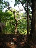 11時08分に出発し、左は植林、右は雑木の境を登っていく。