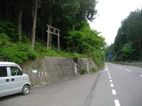 さて、次は「点名:木曽屋」へ登ろうと車をスタートさせた。地形図によると、「点名:木曽屋」からは、西に破線が延びている。この破線を登山路に使おうとしたが、その入口が見当たらない。それで、点名:木曽屋の南西麓にある天神神社から登ろうと考えた。ちょうど神社の入口のそばに駐車広場があった。