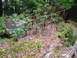 そんなわけで、まずは「点名:上ヶ流」を目指したのである。揖斐川町春日の上ヶ流地区から上ヶ流茶園の間を通って、林道へ入り、上っていくと、点名:千代保のときに使った林道が分岐している。舗装もここまでで、ここからは未舗装となる。この未舗装の林道をさらに600mほど走ると地形図に載っている分岐がある。ここで左折して、この作業道(峰山線)へ入る。そして、2つめのヘアピンカーブのところに駐車する。作業道のふくらみに駐車した。この付近は伐採してあるのか、見晴らしがよくなっている。また、斜面にはワラビがたくさんはえていた。帰りに少々採取した。