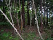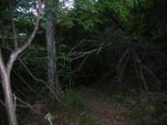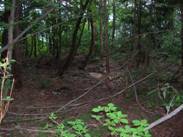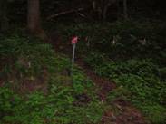 さて、巡視路から外れると道はなく、藪に突っ込むがそんなにひどくはない。やがて、6時36分には掘割りの道のようなものが現れた。
