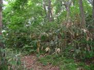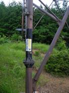 さて、傾斜がやや急になってくる付近に次の鉄塔があった。6時12分である。登山道(巡視路)からは少し左へ入った場所に建っている。そして、さらに緩やかに登って行くと、6時18分に次の鉄塔に出る。この鉄塔の付近にワラビが群生していた。今晩の酒のつまみにと少々採取した。鉄塔はこの尾根の西側を通っているのである。6時26分に巡視路が下りになる場所に出た。地形図で見ると、この尾根はここから右へ曲がって、点名:高山から点名:寺師への尾根に合流するようになっている。鉄塔はこの先の谷をまたいでいるのだから巡視路はいったん下って谷を越えているのであろう。