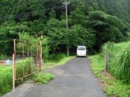 藤ヶ崎トンネルを抜けたらすぐのT字路を左折する。左側には工場があり、この工場の塀の端を左折する。左折するとすぐに「近江湖の辺の道」の道標がある。この道を直進すると、車道は歩道へと変わる。その手前にゲートがあったが開いていた。そのまま車を突っ込んで駐車した。