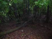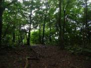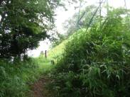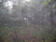 10時58分には下山にかかる。11時02分には峠に戻った。さて、ここからは、「近江湖の辺の道」で整備された遊歩道のはずだった。が?!奥琵琶湖ドライブインへ下る道と、賤ヶ岳への縦走路となっているのだ。しかし、奥琵琶湖ドライブインはすでに廃業してしまっている。この道を利用する人もほとんどないと思われる。さて、賤ヶ岳への縦走路は?というとすでに薮と化していた。しかし、それをかき分けて入って見ると、樹林の中にはっきりとした道がついていた。近江湖の辺の道として整備されたのであろうが、昨年歩いた「山本山〜賤ヶ岳〜余呉湖」と比べると、こちらは、歩いている人が少ないのであろう。その分廃れてくるのであろうし、手入れもされていないのであろう。しかし、こちらの道もなかなかお薦めであると思う。今日は、雨であるが、天気が良ければ樹林の間から琵琶湖や余呉湖が十分臨めると思う。雨は相変わらず小雨が降っていた。