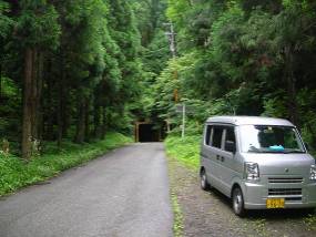 国道8号へ戻り、さらに木之本町から国道303号で杉本地区まで戻り、県道284号へ左折して、杉本トンネルを目指す。舗装はしてあるが、狭い道なので注意して登っていく。このトンネルは杉本集落から上丹生集落へ続く、峠にあるのであるが、幅員が狭くて軽自動車でもすれ違いはできない。長さは100m以上はあると思うが、途中で出会うとどちらかが出口までバックしなければならない。入口で相手のペッドライトが見えればいいが、相手が入口でヘッドライトを点けずに入ってくると分からない。さらにトンネル内は平坦ではなく、中央が標高が高いのでこちらの入口から向こうの入口が見えないときている。まったくやっかいなトンネルなのだ。信号機でも付けてもらいたいい。しかし、交通量は極めて少ないのだ。