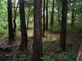 12時12分ころ、左手に植林が現れると、斜面が急になり、これをゼーゼーハーハーいいながら登り切ると、平坦地になった。