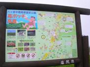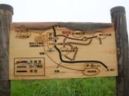 13時10分ころには、駐車場に着いた。駐車場に駐車場は舗装されていないが、無料でかなり広い。大きな案内図と高ボッチ高原、アルプス展望台という石柱があった。天気は曇りであったが、山頂近くになるとガスが出てきて、結局、何も展望は得られなかった。
