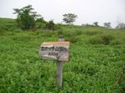 さて、高ボッチ山はと案内図を見ると、ここから歩いて数分のところであった。車道から歩道への入口には案内図があり、「高ボッチ山頂まで400m」という道標もある。草原の中の遊歩道を緩やかに登っていく。まったく気持ちのよい草原である。自分には、ビーナスラインで上がる車山高原や美ヶ原高原よりも、数倍もこの高原の方が好きだ。こちらの方が絶対お薦めだと思う。山頂への登山道の他にも草原の散策路がいろいろ用意されている。それらの散策路を利用して、高山植物の観察をしている人もいる。