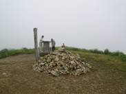 早速、そちらへと歩いていく。ガスのため相変わらず、展望は開けない。晴れていれば素晴らしい展望なのであろうが残念である。山頂にはすぐに到着した。先人が数人くつろいでいた。グライダーで遊んでいるグループもある。