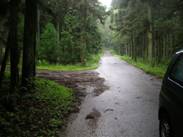 そこへ進入すると、はじめは舗装されているが、やがて未舗装となり、大きく右へUターンする。そして、今度は左へ大きくUターンする尾根乗り越しの場所に出る。ここに駐車広場があるので、早速、駐車する。