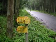 この駐車地点から50mほど戻ると、左側に鉄塔巡視路の案内板(R105)がある。