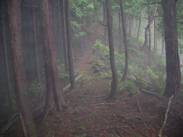 ちょうど、ここで自宅から電話が入った。それで、すぐに下山することにしたのであった。植林のため、展望はない。