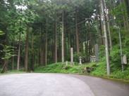 狭い道を登って行くと、大吉寺の駐車場に着く。大吉寺の石柱と上之森神社の石柱がある。