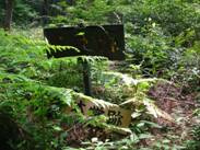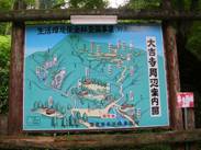 山頂は平坦地になっているが、展望はない。なんとか体力を回復し、10時54分に下山した。11時00分には分岐点に着いた。ここから往路を離れ、未知のルートへと入りこむ。青いビニールテープがある。この青いテープだけが頼りである。しばらくして、掘割り状の道に出た。とにかくこの堀割状の道を忠実に下った。途中、左山でトラバースする箇所もあり、この付近は道が不明瞭であったが、なんとか、ビニールテープを拾いながら、下った。そして、ザックの肩ひもが壊れてしまい、テープで補修しながら下った。11時40分に「NO.101鉄塔」に出た。やれやれ一安心だ。ここからは、鉄塔巡視路があり、道は明瞭であった。しかし、すごい急登である。体が重くゆっくりとしか下れなかった。それでもなんとか、12時05分には大吉寺のお堂の横に下り立った。鳥居をくぐって、さらに石段を下ると、12時07分に車道へ出た。大吉寺の大きな案内図がある広場の前である。舗装車道を下って、12時08分に駐車地点に戻った。