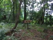 右下に「あか池」があり、さらにもう一段下る。9時19分に「あか池」を左に見て、「あか池」の右側を進むと、すぐに「元池」の看板が木につけてあった。その横をトラバースしていき、尾根を左へ上がる。この付近が一番不明瞭で登山道はないようだ。それでも何とか踏み跡を探しながら登って行く。