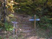 9時10分に登山口の駐車広場に着いた。先客が1台駐車してあった。すぐに準備をして、9時15分に登山口を出発した。木製の階段を上がると、9時16分にAコースとBコースの分岐点に出た。