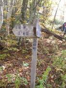 13時28分に通過した道標には「イワビア」とも記してあったが、どういう意味なのであろうか。そんなことを考えながら、13時33分には植林帯に入り、13時37分にAコースとの合流点に出た。いままでの周回コースを振り返り、13時41分にここを出発して、13時41分に林道へ下り立った。ここでも今日の登山を振り返りながら、車に乗り込み、14時05分に「寝覚の床」の無料駐車場に着いて、解散とした。