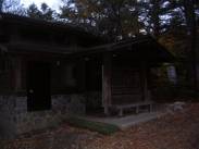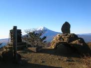 7時29分である。ここを「木無山」とする解説本もあるらしい。さて、このすぐ下に「四季楽園」はある。目の前には「開運山」と少し離れて「御巣鷹山」の見えるが、いづれも山頂付近には電波塔や反射板が林立している。7時31分に出発し、少し下って、7時32分に「四季楽園」の前を通過して、7時33分に鞍部の分岐に出た。開運山への道と、開運山を通らずに直接、御巣鷹山へ行く道との、分岐になっている。ここにはトイレがある。まずは、開運山へと登りにかかると、7時34分に「富士見荘」に出る。この富士見荘は現在営業しておらず、扉は閉まっていた。ここから急な木製階段を登っていくと、7時40分に開運山(三ツ峠山)山頂に飛び出した。
