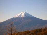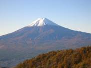 目の前に富士山がすごい迫力で迫っていた。すごい!!久々の感動ものだ。山頂部は真っ白で、左右対称の裾野が広がり、富士山はどう見ても登る山ではなくて、眺める山なのだと実感した。尾根の一帯は降霜で真っ白であった。また、霜柱が一杯あった。