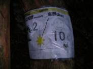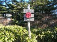 すると、すぐに「2/10」の表示のある場所に着いた(6:37)。えっ!!、「1/10」はなかったのにいきなり「2/10」か。「1/10」の表示は見落としたのであろうか。まあ、そんなことはいいが、こうした表示があるのはありがたい。この急登はそうとう体力を消耗する。それでもガマンで登るしかないが、いったん平らな場所(6:47)に出てホッと一息ついた。しかし、また急な坂となり、「3/10」の表示(6:52)と「4/10」の表示(7:13)を通過して、ようやく「恵那山」の道標のある平らな尾根(7:20)に出た。